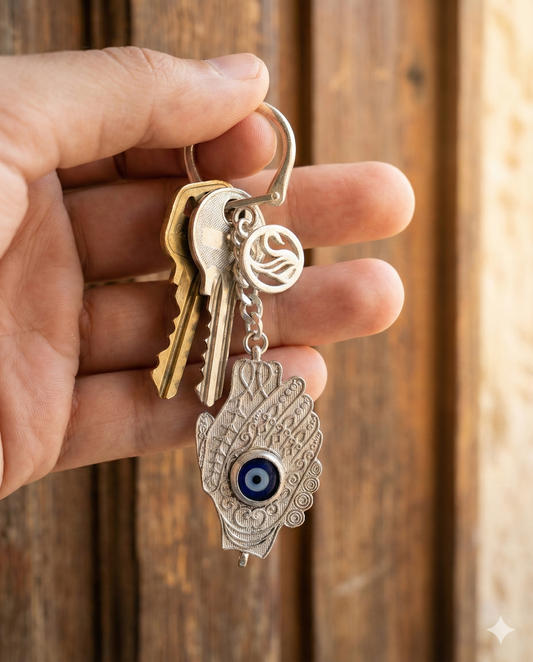 Evil Eye Keychain (Hamsa) in 925 Pure Silver