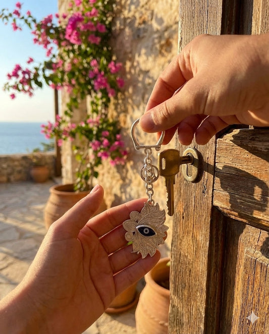 Evil Eye Keychain (Lotus) in 925 Pure Silver