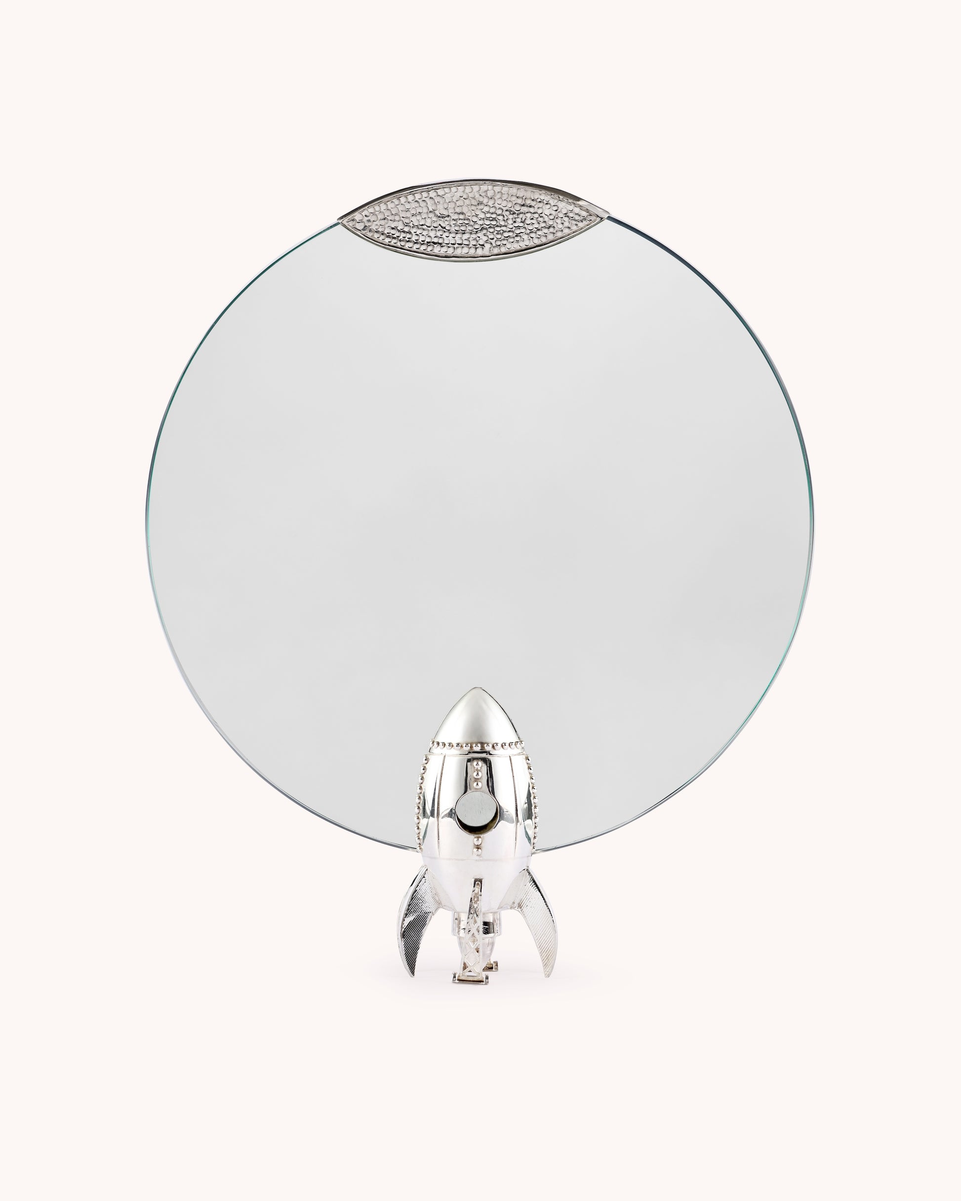 Blast off into imagination with the Rocket Mirror. A playful yet refined addition to a child’s room, this handcrafted silver piece merges functionality with fantasy. Perfect as a keepsake or décor accent, it reflects not just faces but the endless possibilities of childhood dreams.