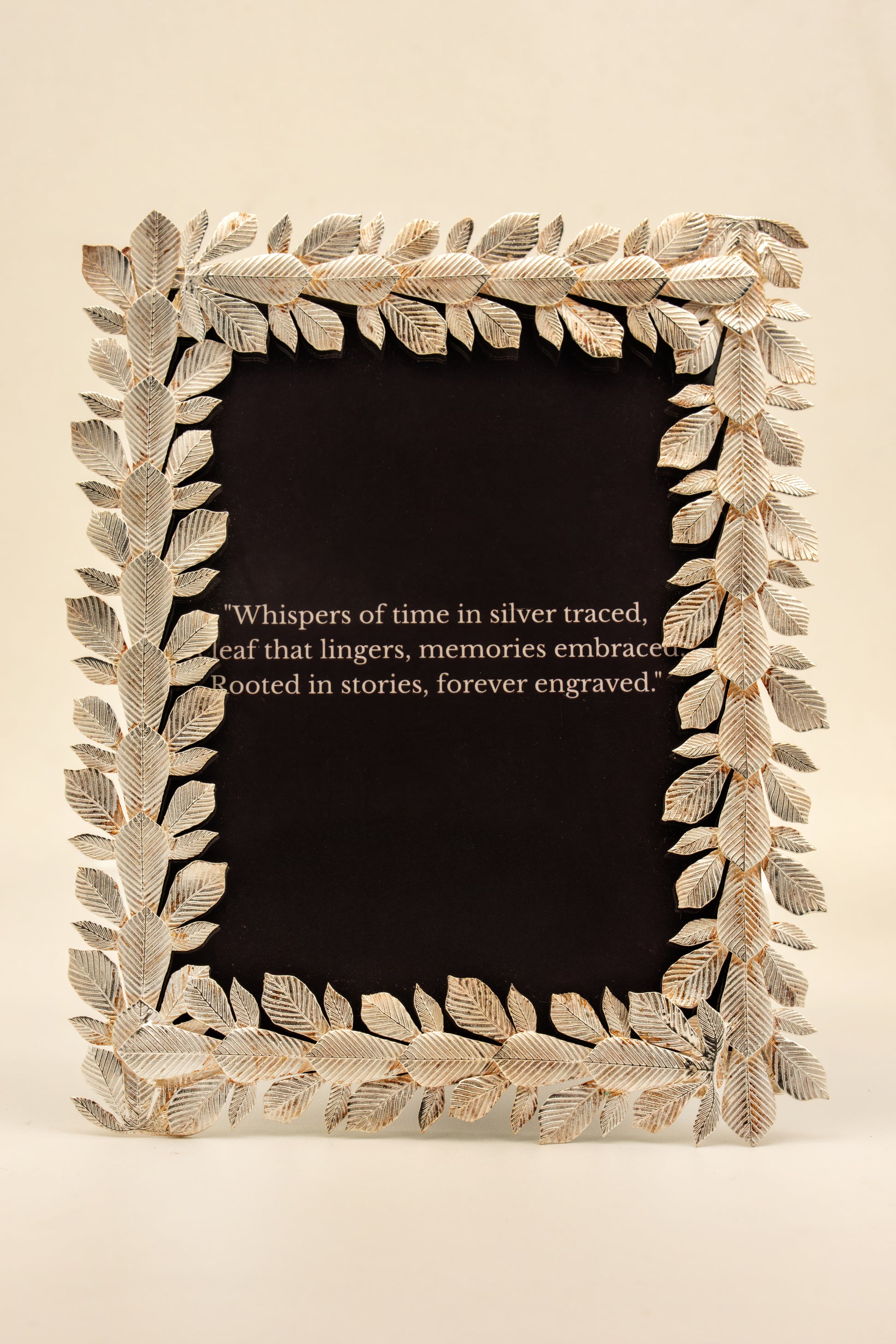 Capture your cherished moments in timeless elegance with this exquisite 925 pure silver photo frame. Meticulously crafted, the frame features an intricate leaf motif that brings nature's grace to your décor. The hallmarked sterling silver construction ensures durability and lasting brilliance, while the delicate leaf detailing adds sophisticated botanical charm. Perfect for displaying treasured photographs, this frame seamlessly complements both contemporary and traditional interiors. An investment piece that transforms any space into a gallery of memories.