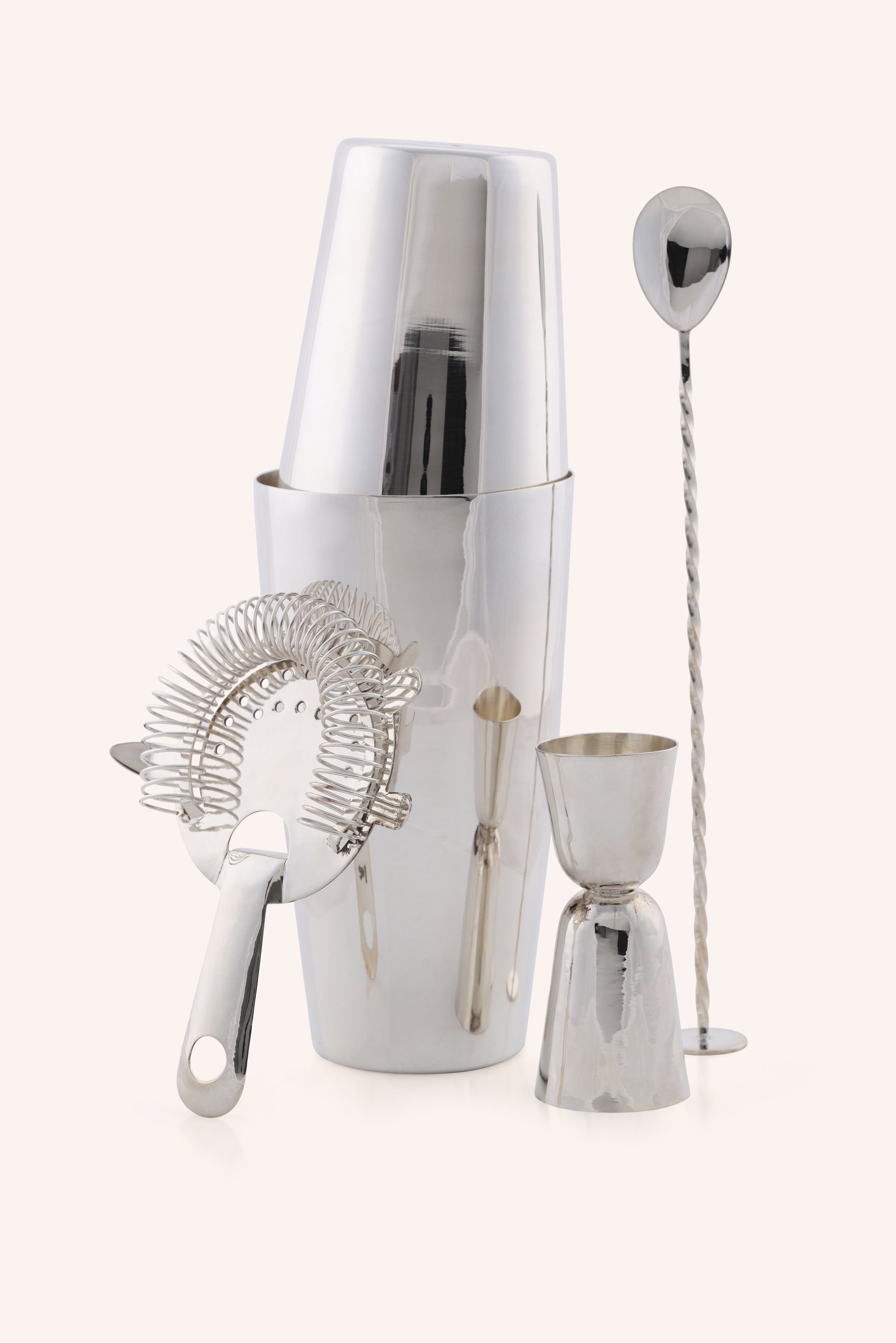 This high-polish 92.5 silver cocktail shaker is handcrafted with a seamless silhouette and finished in high polish to achieve a mirror-like shine. Its brilliance enhances the performance of mixology while reflecting the elegance of silver artistry. A must-have for luxury barware collections.