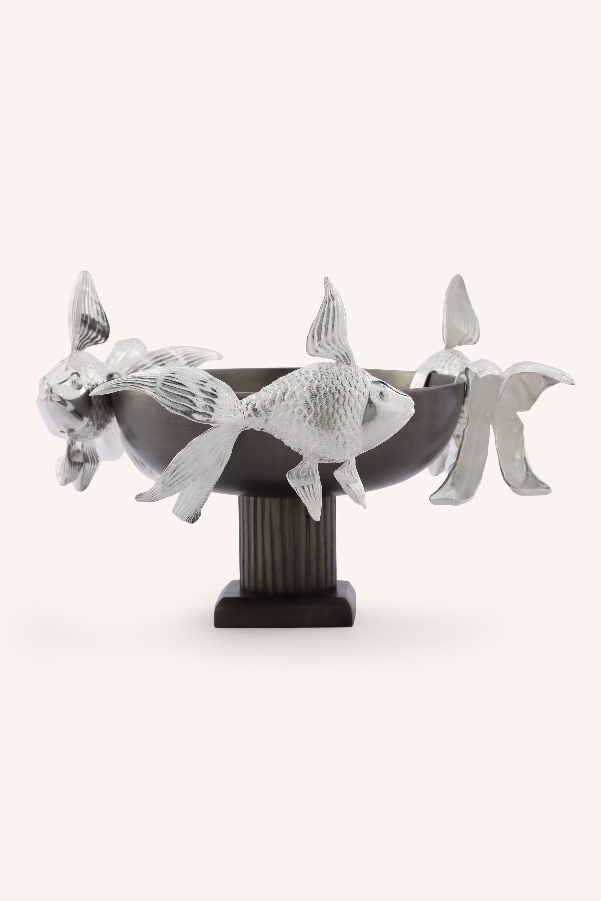 Symbolising prosperity, harmony, and good fortune, the Koi Fish Serving Bowl is a masterpiece of storytelling and silver artistry. Hand-sculpted koi swim gracefully along the rim of a bold bowl, elevated on a sturdy pedestal. Perfect for fruits, sweets, or savouries, it brings cultural richness and elegance to the high tea experience.