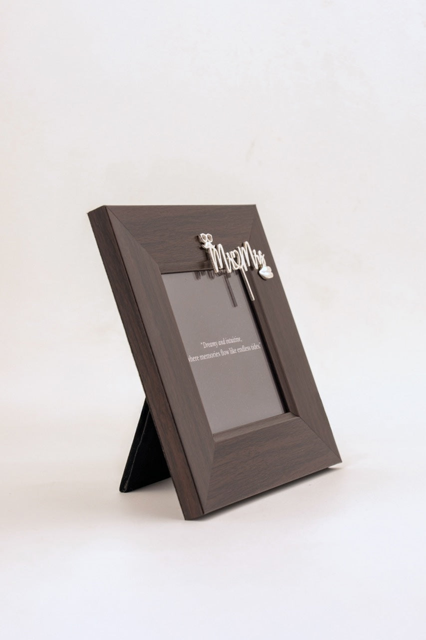 Celebrate your love story with this exquisite Mr & Mrs frame set, crafted from 925 pure silver and mounted on a warm wooden frame. Each piece features elegant lettering that captures the essence of togetherness, making it an ideal anniversary gift for couples. The combination of precious metal and natural wood creates a timeless aesthetic that complements any décor style. Display these frames side by side or individually to commemorate your most cherished moments together. A sophisticated keepsake that honors commitment and enduring romance.