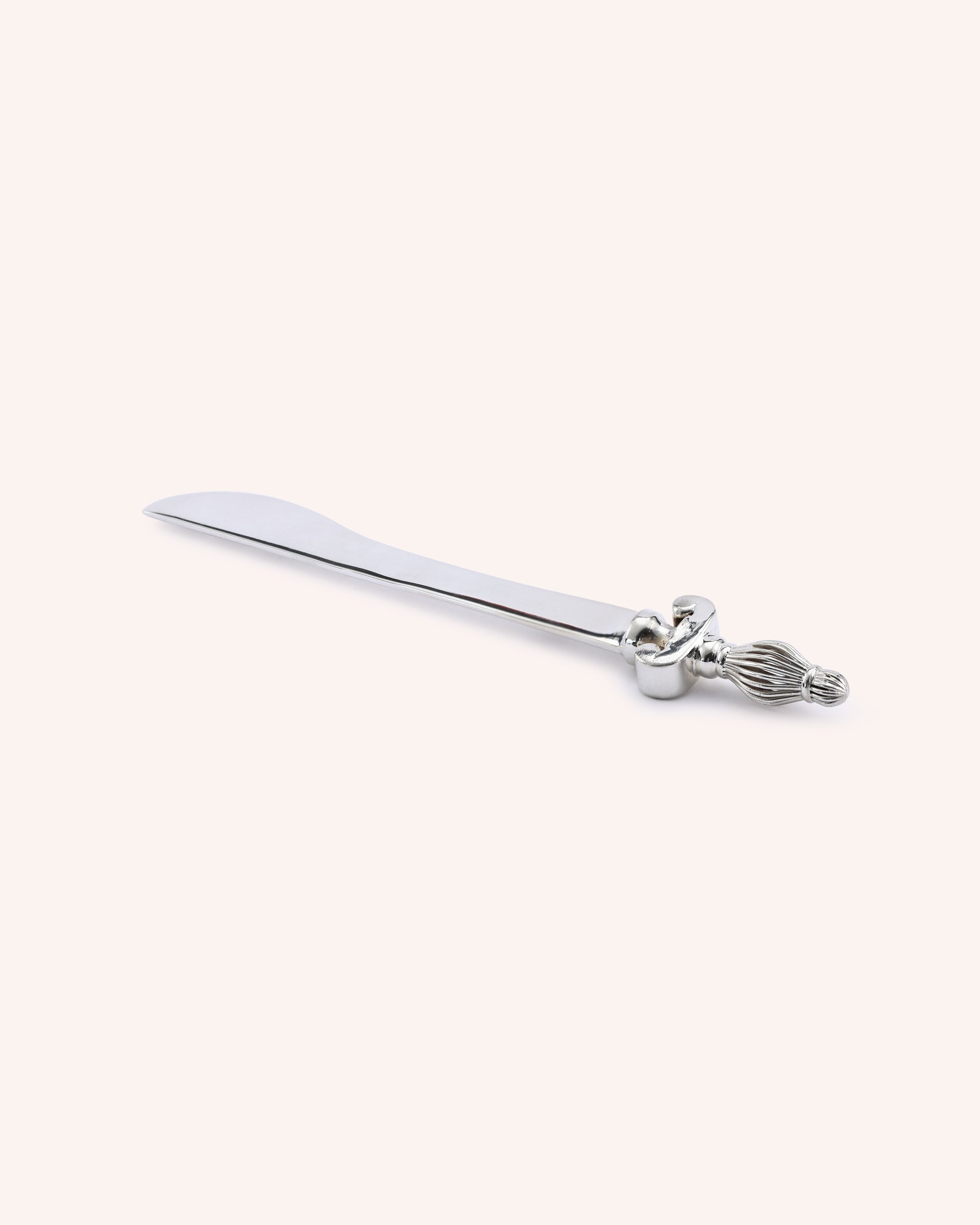Handcrafted in pure silver, this kids' knife is accentuated with a delicate bow detail that blends grace with simplicity. Designed for both beauty and utility, it glides effortlessly across your table, making it a perfect choice for those who value refinement in small rituals. More than a serving piece, it is a symbol of sophistication, transforming everyday dining into a quiet celebration of luxury.