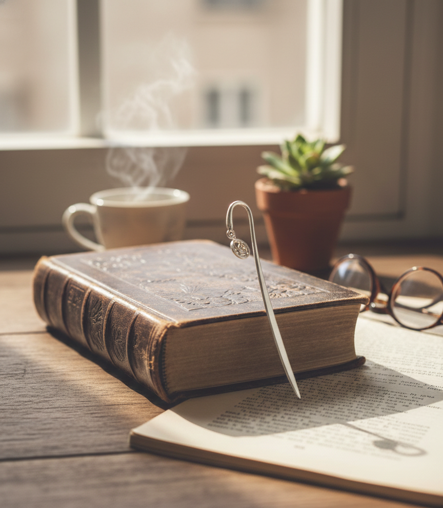 Elevate your reading experience with this refined sterling silver bookmark, a timeless accessory that combines functionality with understated elegance. Meticulously crafted from premium sterling silver, this piece resists tarnishing and develops a distinguished patina over time, adding character to your collection. Its lightweight design ensures it won't strain delicate pages, while the smooth finish glides effortlessly through your favorite volumes. Perfect for the discerning reader who appreciates quality craftsmanship and enduring beauty, this bookmark serves as both a practical tool and a subtle expression of refined taste.